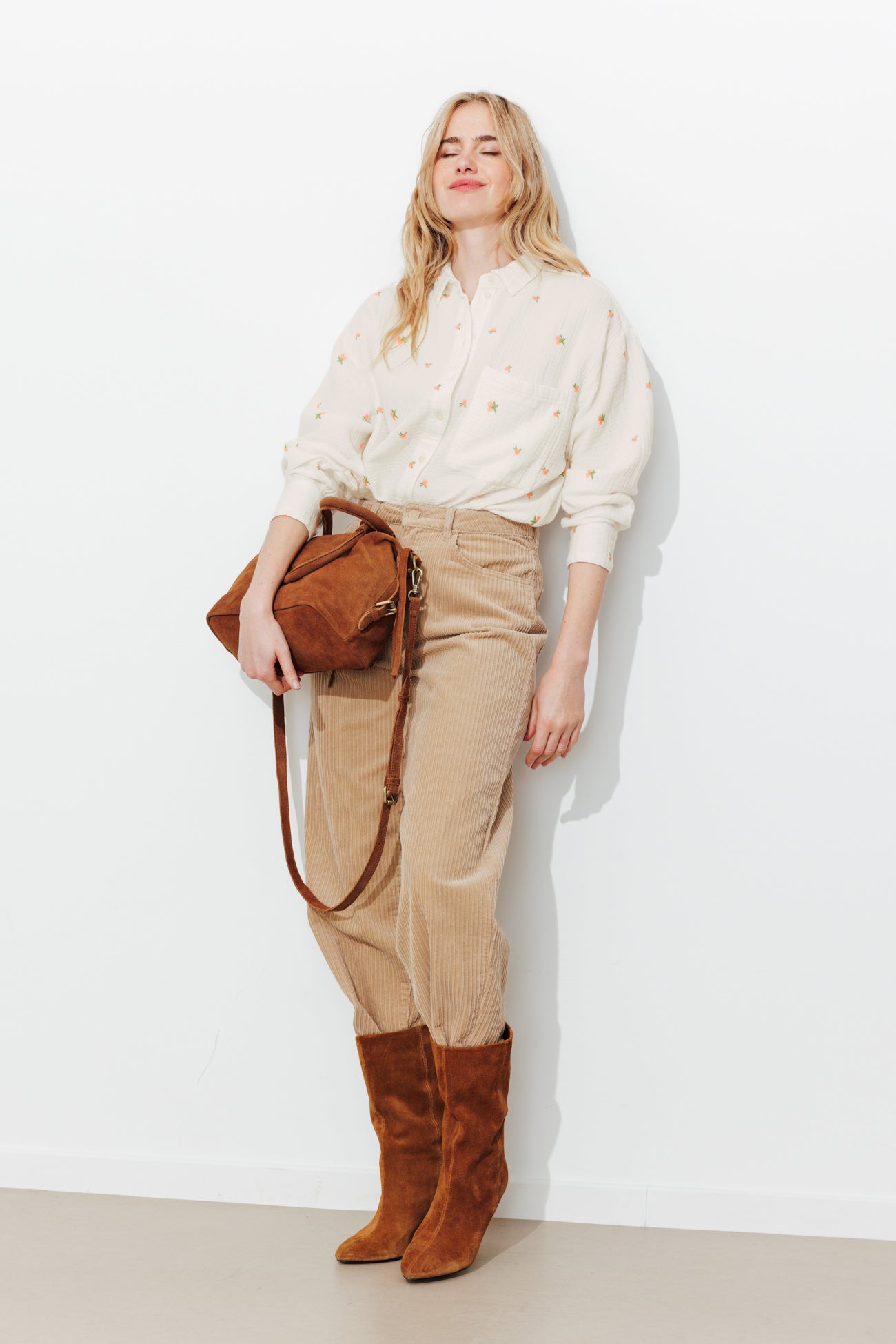 Cette chemise en gaze de coton enchante le quotidien grâce à des petites fleurs brodées : c'est très frais ! Coupe ample. Col chemise. Ouverture boutonnée (boutons nacrés). 1 poche poitrine. Manches longues, poignets boutonnés. Base arrondie. Plis dos. Contient du coton issu de l'agriculture biologique, cultivé sans pesticides, ni engrais chimiques, ni OGM afin de préserver la biodiversité.