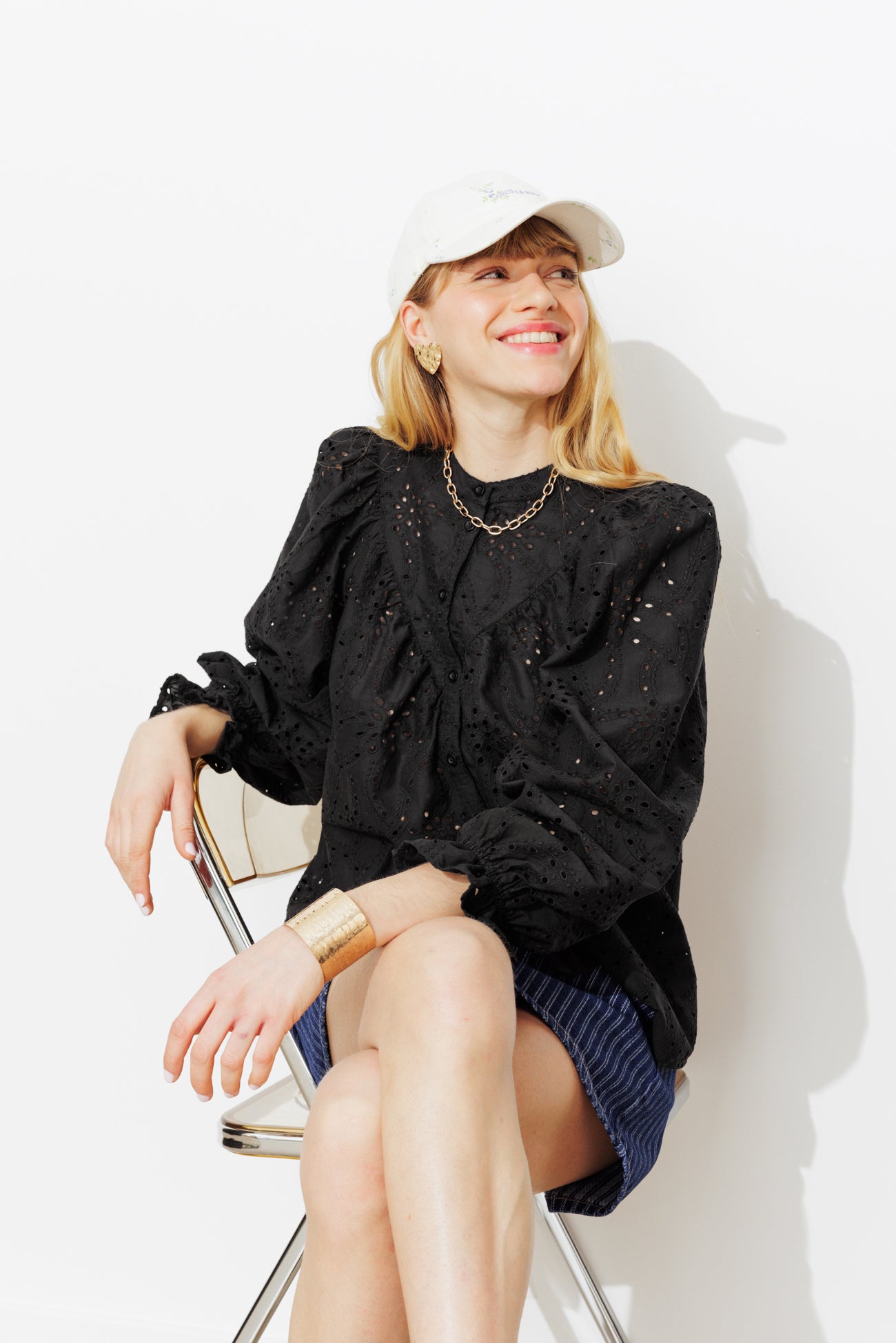 Chemise en broderie anglaise - Noir