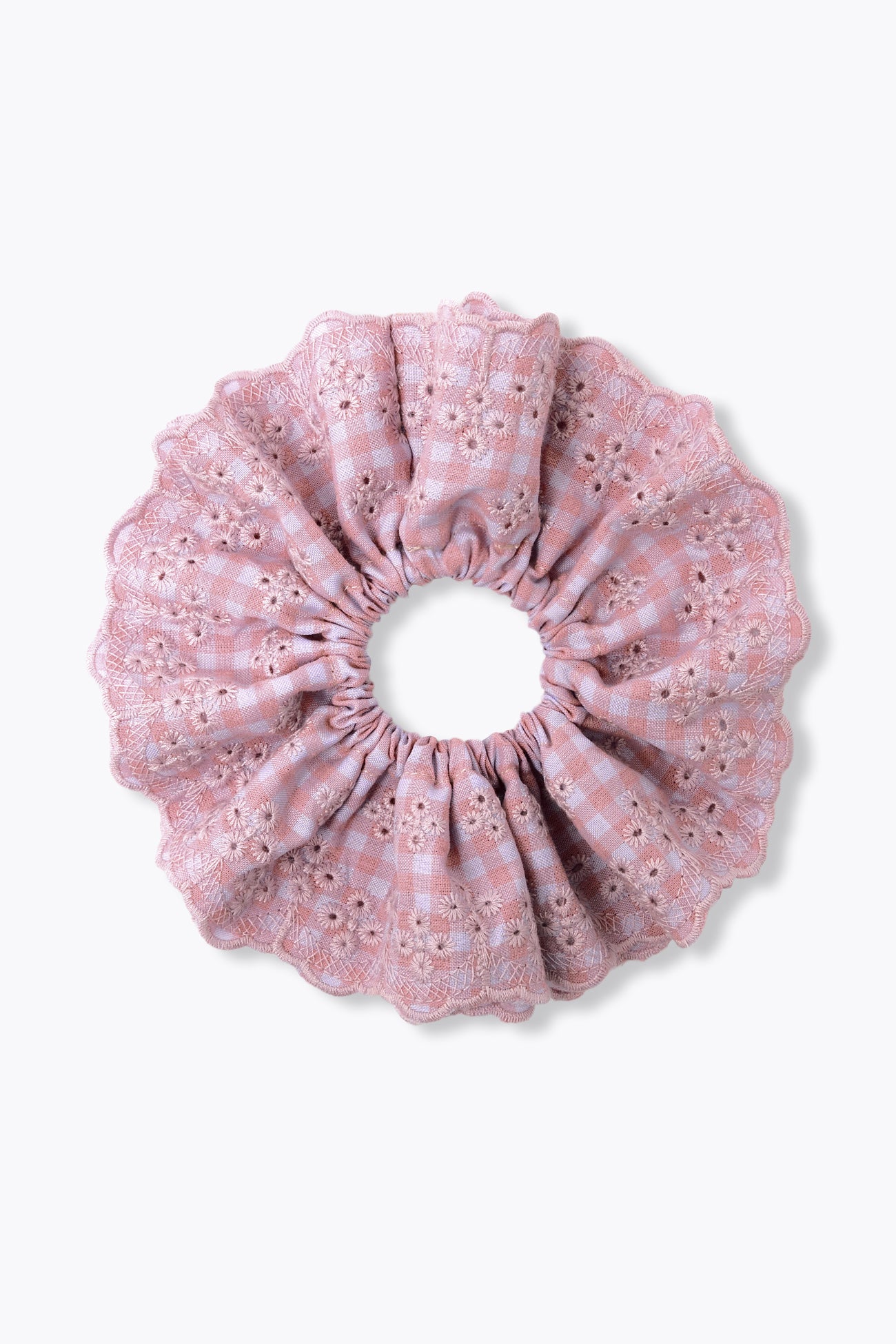 Le chouchou le plus trendy, c'est lui ! Carreaux vichy & broderie anglaise s'associent pour personnaliser les queues de cheval, les chignons coiffés-décoiffés, et les poignets ! Coton mélangé, carreaux en fils teints, ajours brodés, bords festonnés. Taille unique. Belle idée-cadeau.