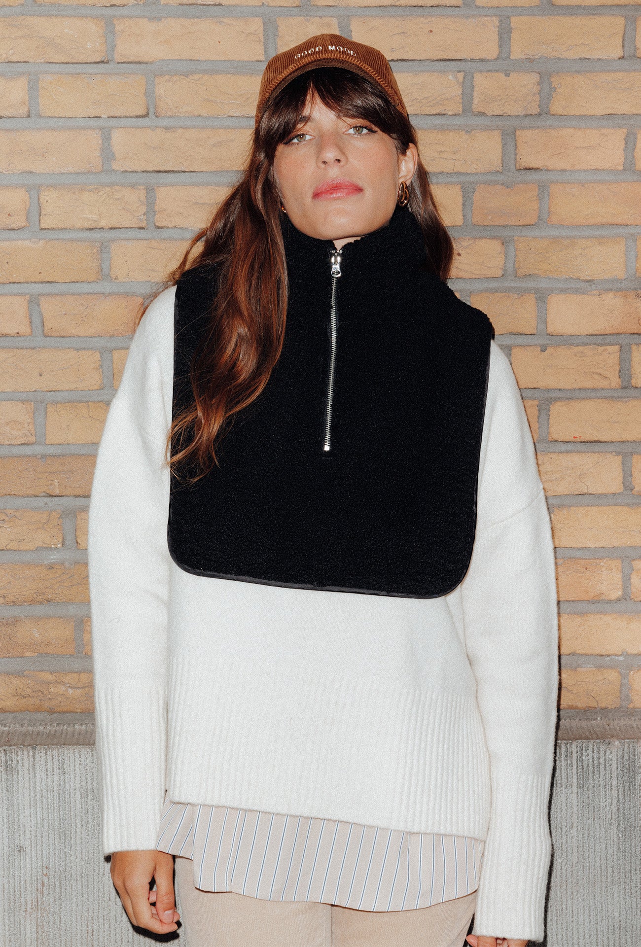 La météo est changeante ? Le col plastron en moumoute nous fait aimer less variations de température. Il répond aussi à nos envies de cocoon ++, sous une parka, un manteau long, une veste... Il fait plus chaud ? On l'enlève et on le range dans son sac. Col montant. Ouverture zippée, enfilage facile. Biais satiné en finition. Doublure satinée. Taille unique. Belle idée-cadeau.