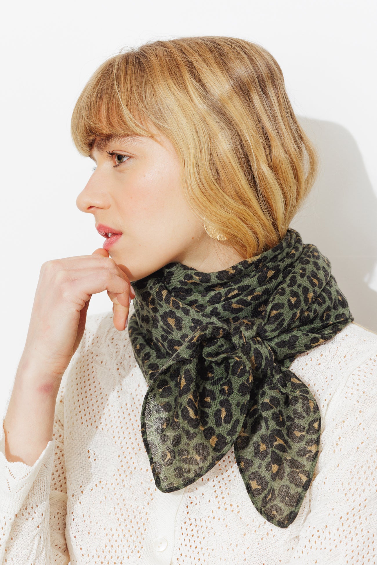 Foulard carré léopard en laine - Kaki