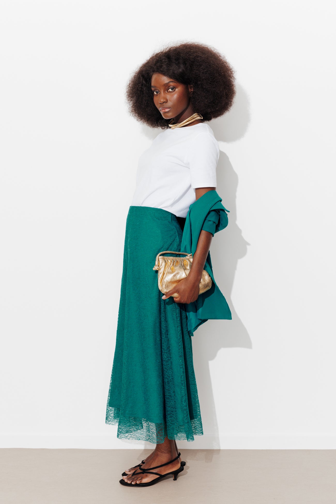 Longue jupe en dentelle Femme - Vert émeraude
