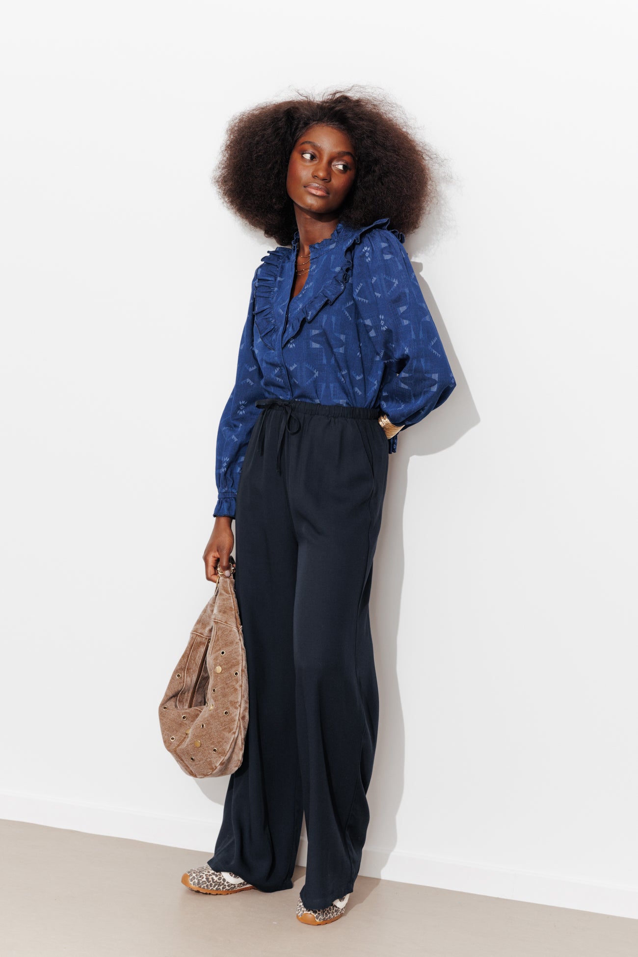 Pantalon large ceinturé Femme - Marine