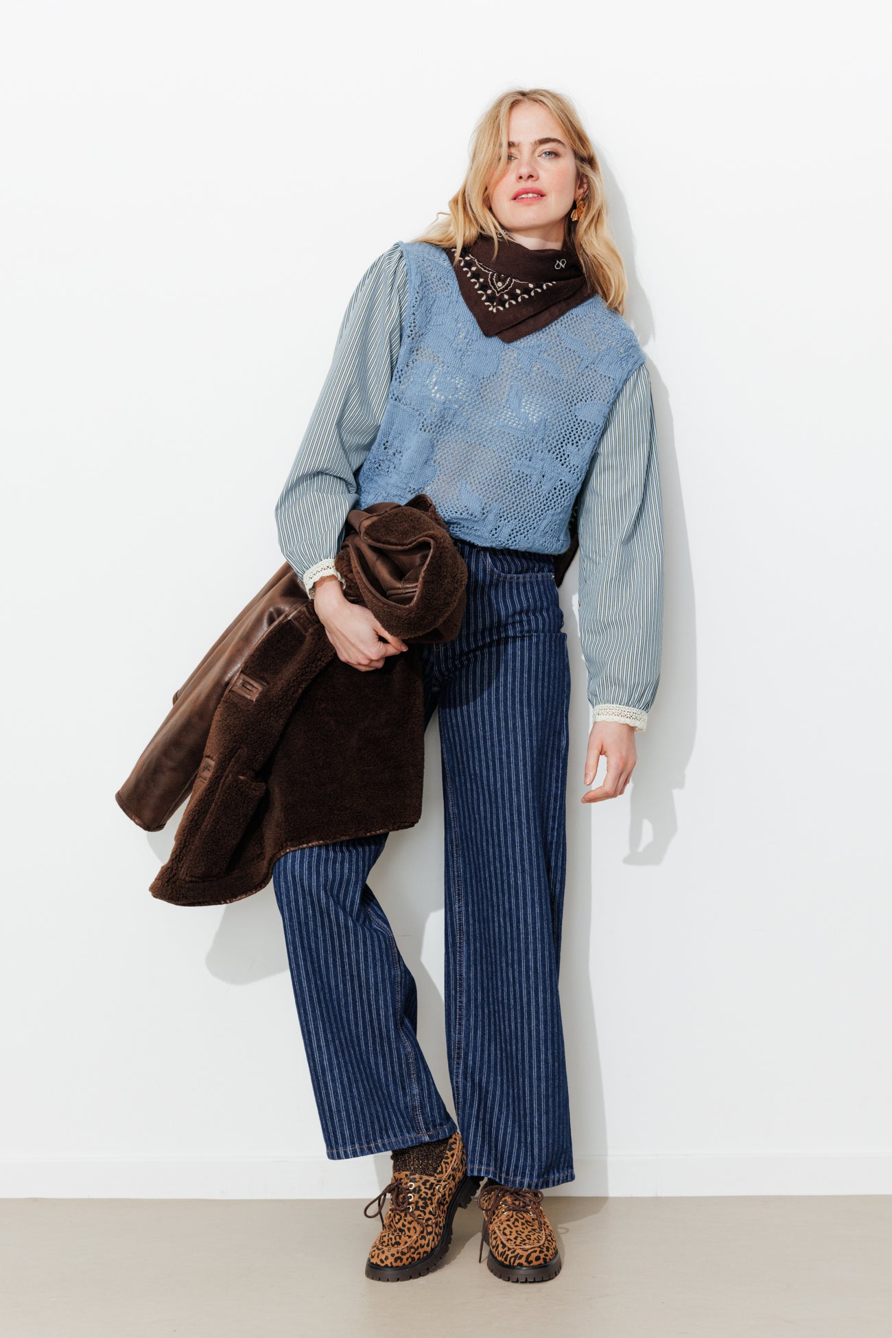 Ce pull à effet superposé mixe les genres ! Il convoque le romantisme avec une maille ajourée qui dessine des fleurs + un galon de dentelle sur les poignets. Il invite le chic boyish avec des manches de chemise rayée. Maille fine enrichie en laine. Col rond. Coupe légèrement resserrée à la base. Manches longues bouffantes, poignets boutonnés. Bords-côtes. Ce pull contient des fibres recyclées.