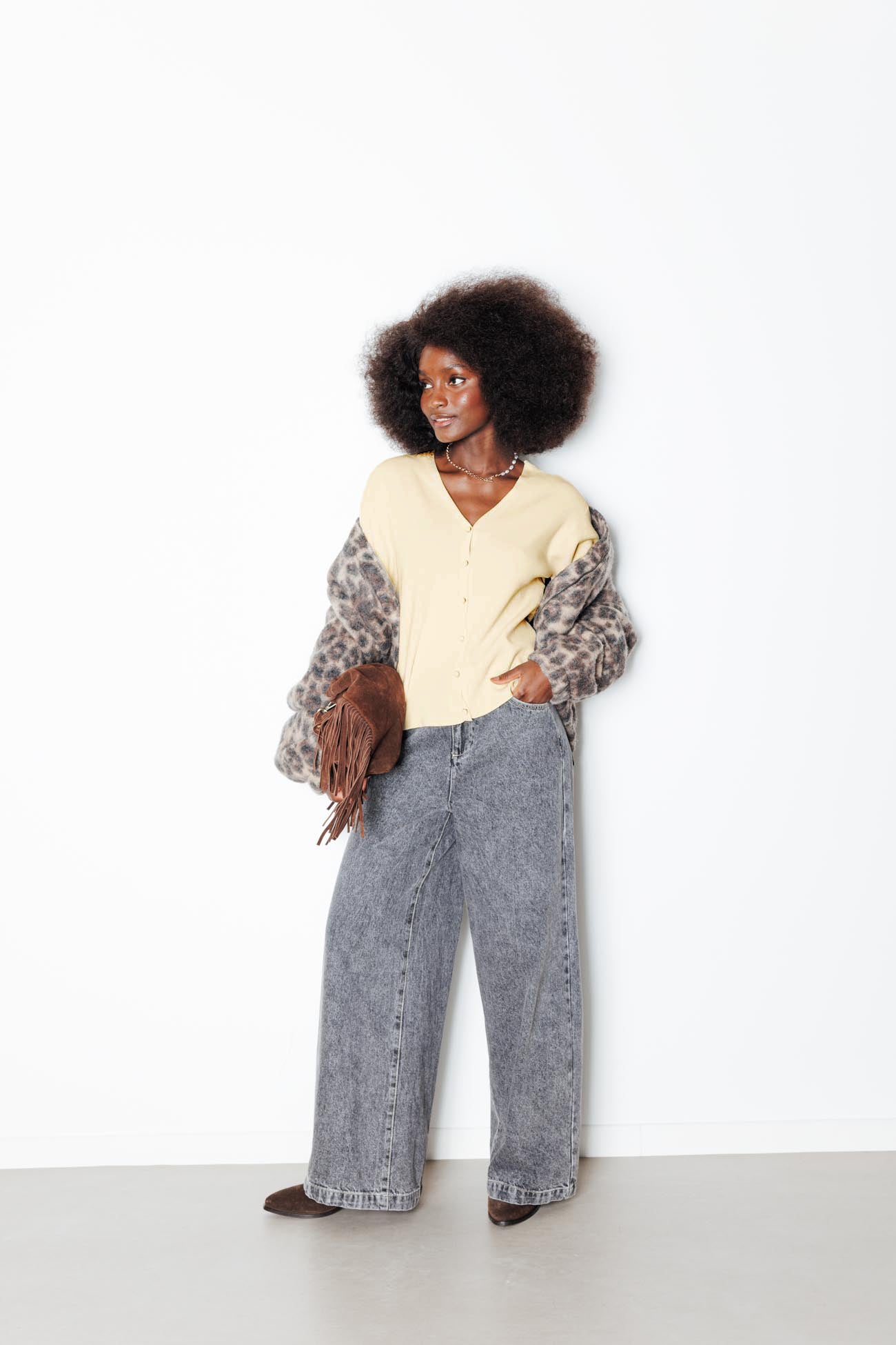 A aimer tout de suite ! Et à porter boutons émaillés devant ou dans le dos. Ce pull est une bonne base de dressing : la solution parfaite pour upgrader un look, version jour ou version soir. Maille fine et côtelée, en viscose mélangée. Coupe légèrement resserrée à la base. Col V devant et dos. Manches longues légèrement bouffantes. Bords-côtes. Ce gilet femme contient des fibres recyclées.
