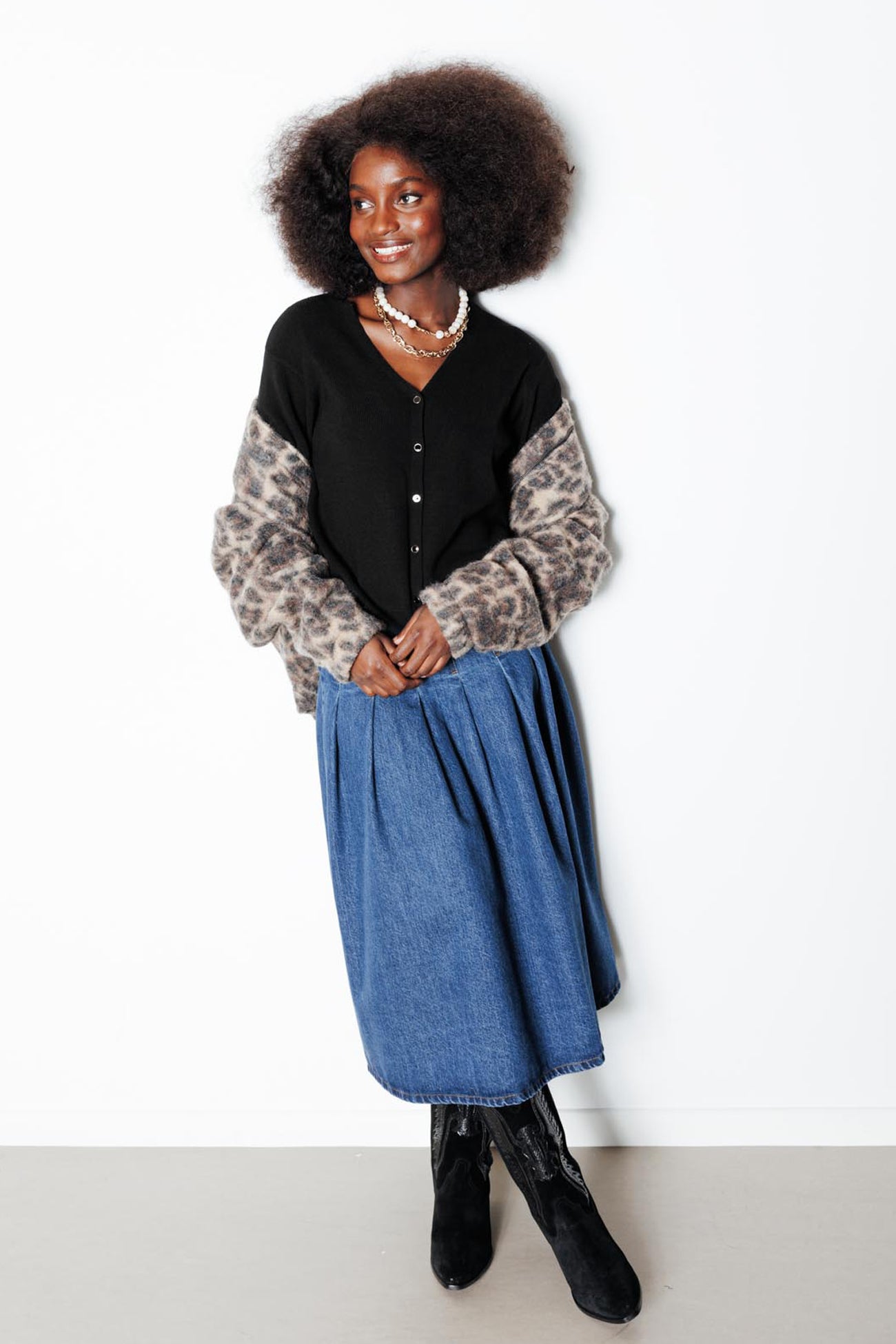Pull-cardigan recto-verso - Noir