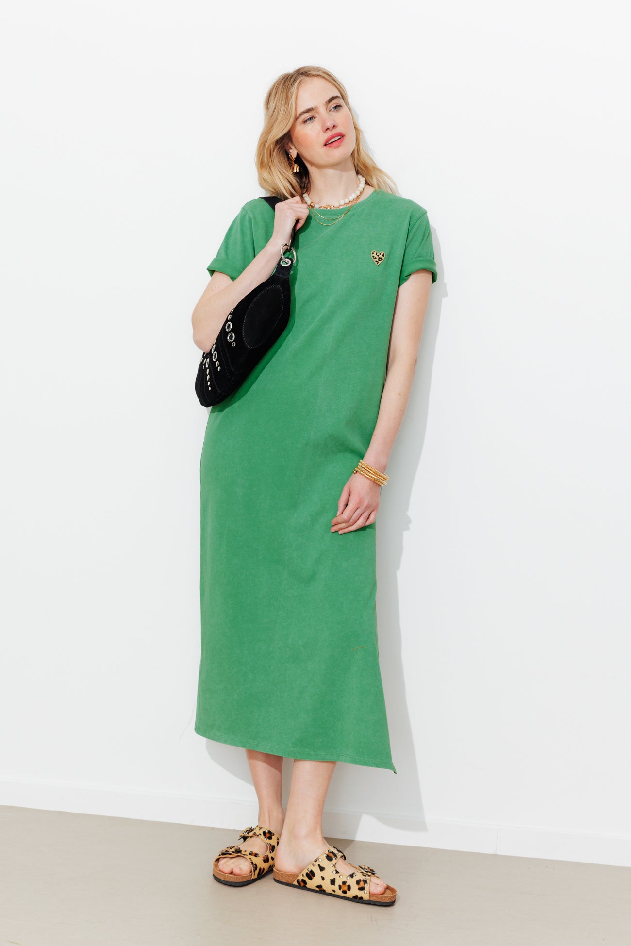Robe longue coeur léopard - Vert clair