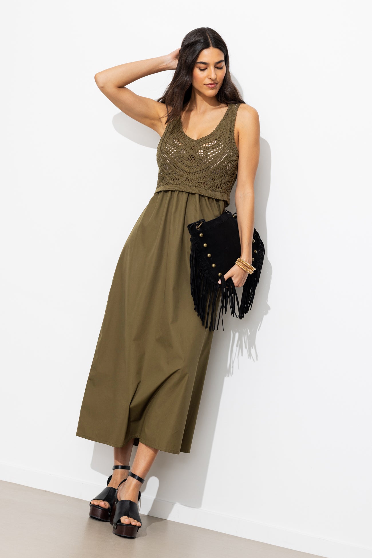 Robe longue effet 2 en 1 - Vert olive