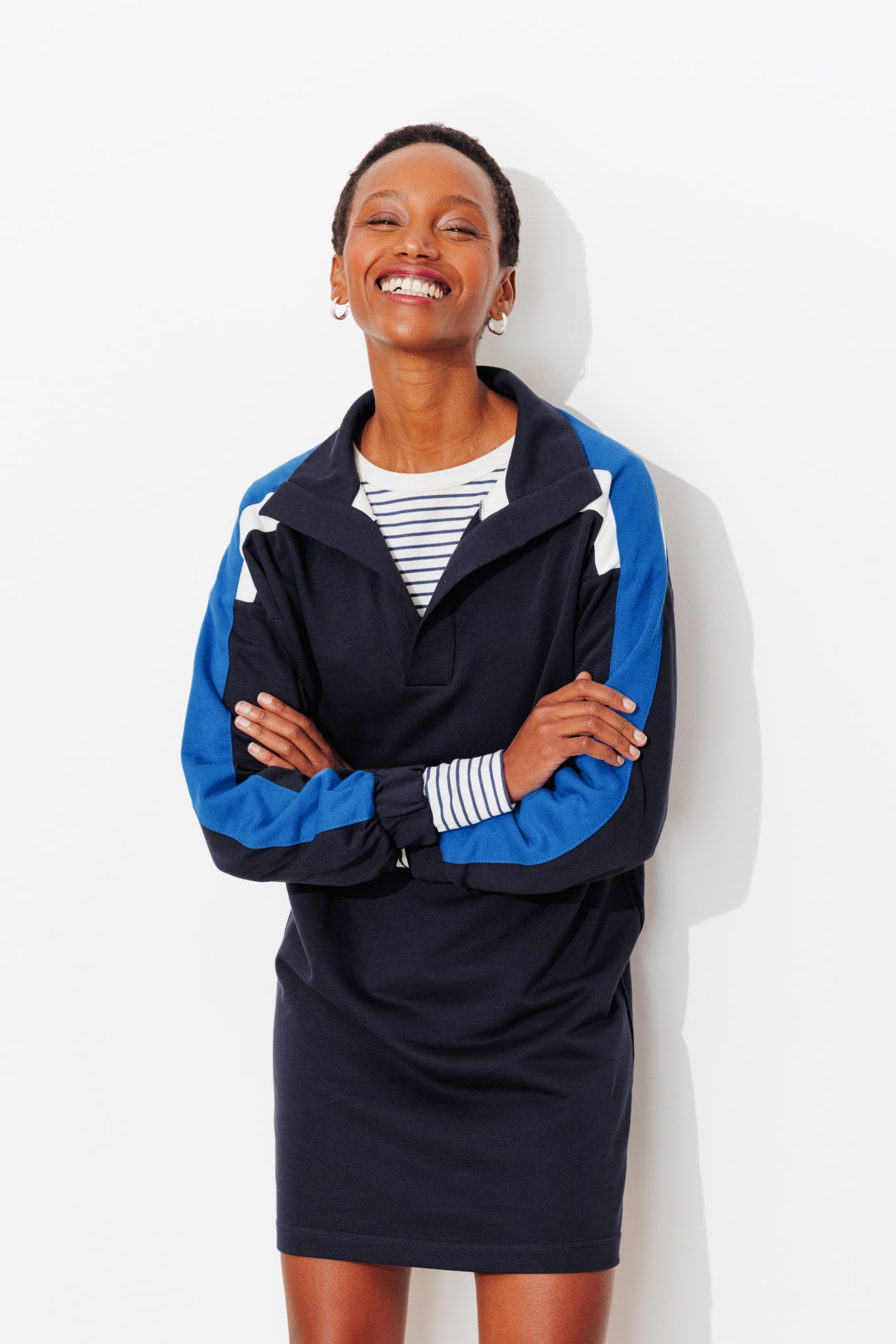 Qu'on se le dise : il va y avoir du sport... dans l'allure avec cette robe en molleton doux ! Coton mélangé. Intérieur bouclettes. Coupe droite. Col montant, ouverture en V. Emmanchures descendues. Bandes contrastées sur les manches longues, poignets élastiqués. Base droite. Cette robe contient du coton issu de l'agriculture biologique, cultivé sans pesticides, ni engrais chimiques, ni OGM.