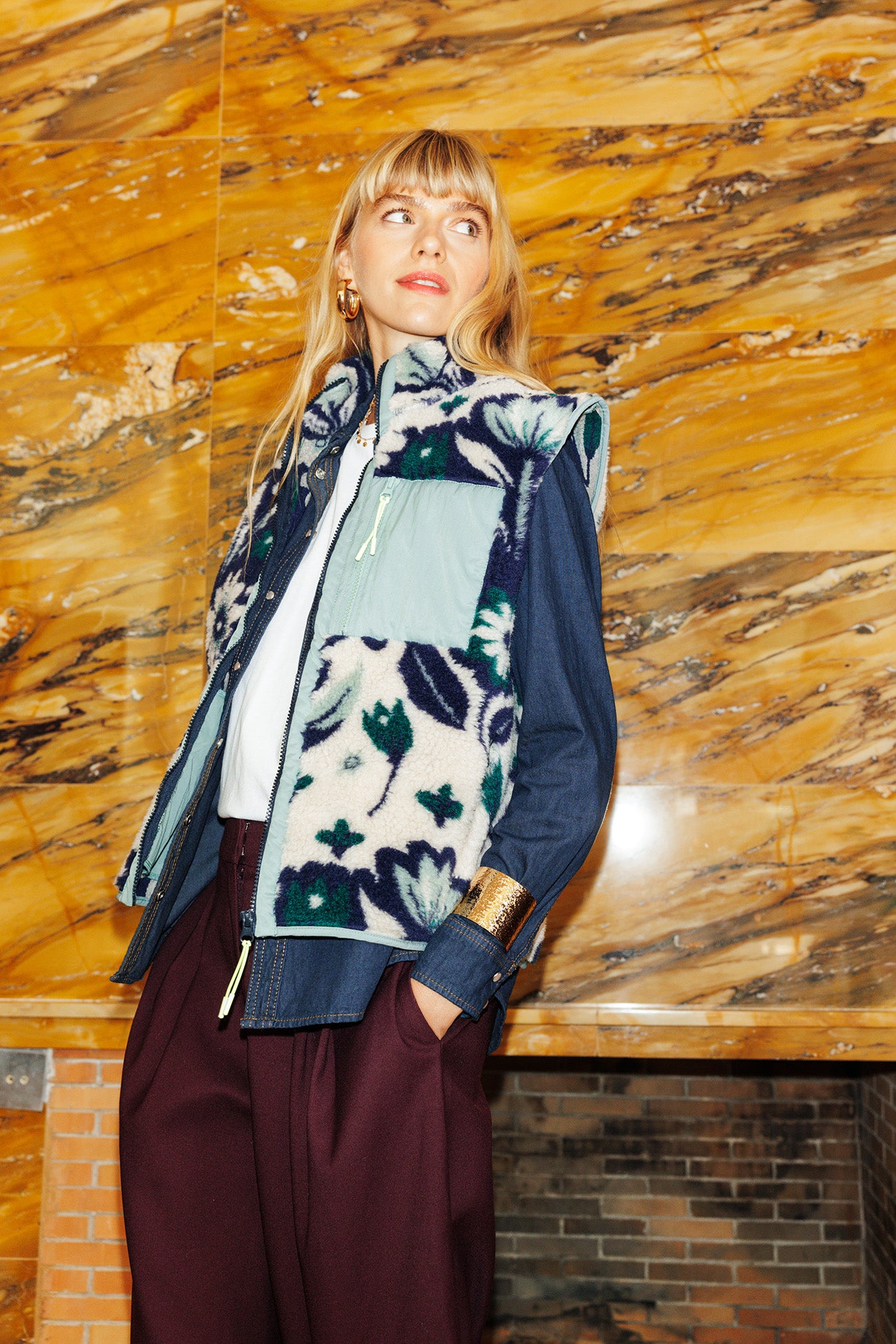 Aventure urbaine ou exploration de nouveaux horizons : on se réchauffe stylée avec cette polaire sans manches imprimée ! C'est doux, c'est chaud et super pratique. A porter sous un manteau ou au-dessus d'un pull. A aimer dedans ou dehors. Coupe droite. Col montant. Ouverture zippée. 1 poche poitrine contrastée zippée. 2 poches. Ce blouson zippé femme contient de la laine et des fibres recyclées.