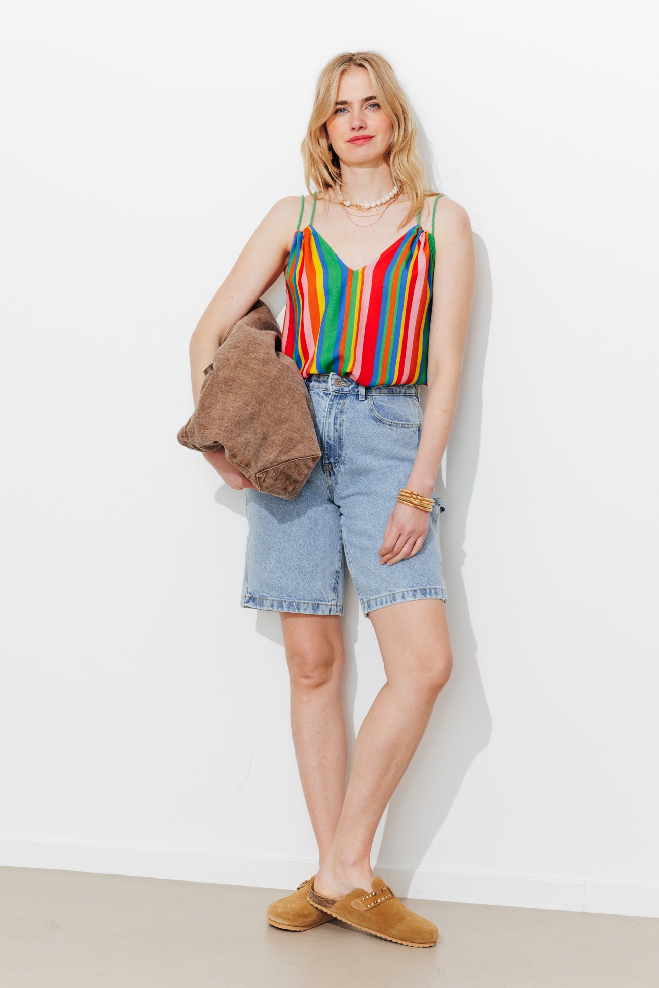 Top rayé à bretelles nouées - Rayures multicolores