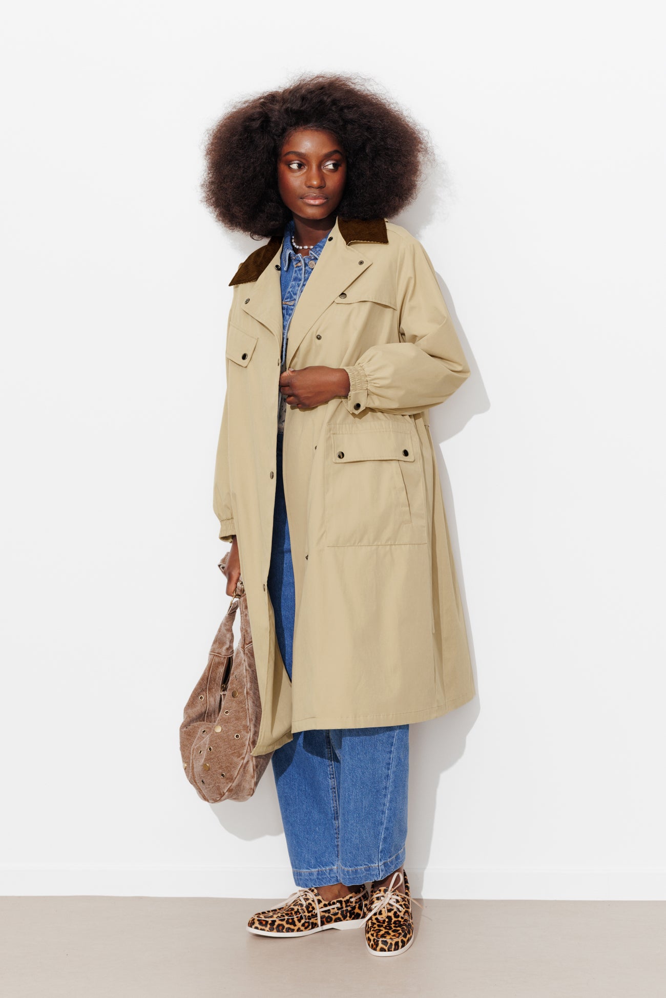 Ce trench est... le meilleur ami d'un look urbain. Le meilleur choix pour upgrader un style sportswear. La meilleure option pour la vie quotidienne. Coupe large. Col à revers en velours côtelé. Bavolets. Ouverture asymétrique pressionnée. Patte ceinturée aux épaules. Ceinture amovible. Manches longues, poignets élastiqués, patte pressionnée. 4 poches. Haut doublé. Contient des fibres recyclées.
